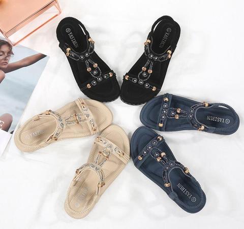 Sandalias planas de piel suave para mujer, zapatos a la moda personalizados, con nuevo diseño